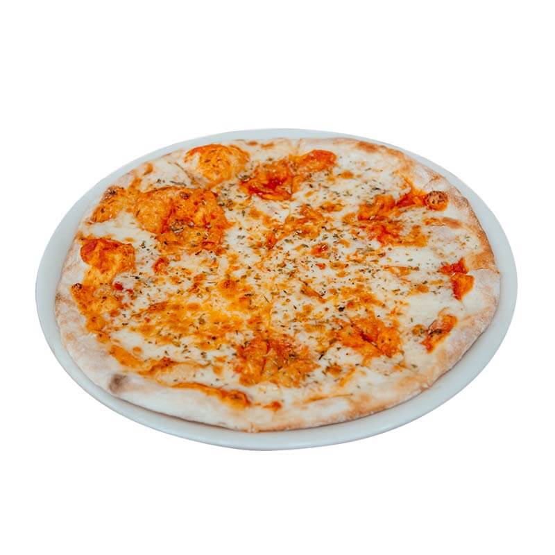 Mozzarella, salsa de tomate, jamón de pavo y piña. Con cerveza o refresco.
